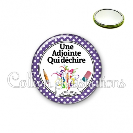 Miroir simple avec dos métallique décoré d'une image fantaisie et texte.