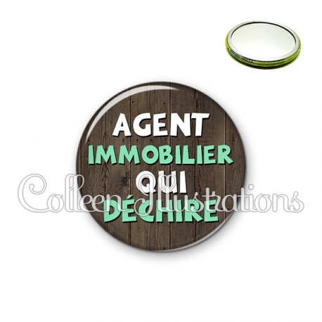 Miroir simple avec dos métallique décoré d'une image fantaisie et texte.