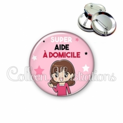 Image imprimée en haute résolution sur papier de qualité, protégée d'un film plastique, et sertie sur une coque et épingle métallique.