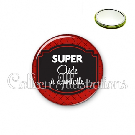 Miroir simple avec dos métallique décoré d'une image fantaisie et texte.