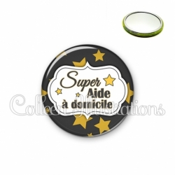 Image imprimée en haute résolution sur papier de qualité, protégée d'un film plastique, et sertie sur une coque métallique avec dos miroir. Une seule face, non grossissante.