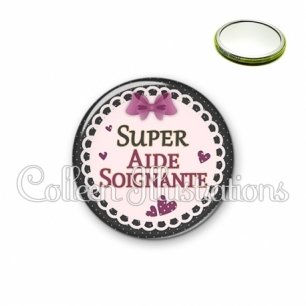 Miroir simple avec dos métallique décoré d'une image fantaisie et texte.