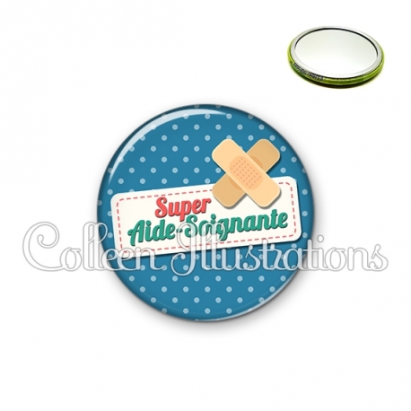 Miroir simple avec dos métallique décoré d'une image fantaisie et texte.