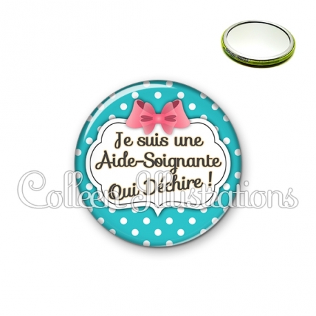 Miroir simple avec dos métallique décoré d'une image fantaisie et texte.