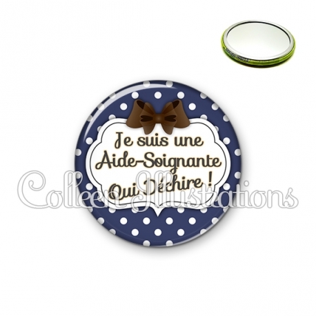 Miroir simple avec dos métallique décoré d'une image fantaisie et texte.