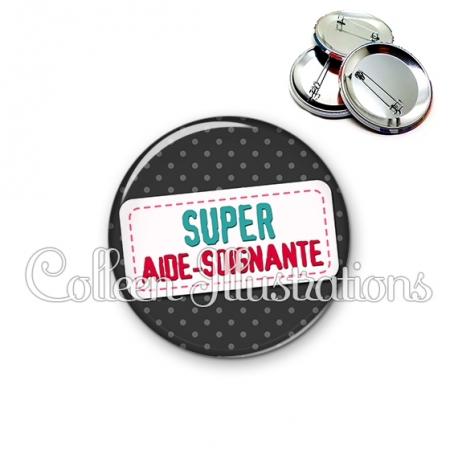 Image imprimée en haute résolution sur papier de qualité, protégée d'un film plastique, et sertie sur une coque et épingle métallique.