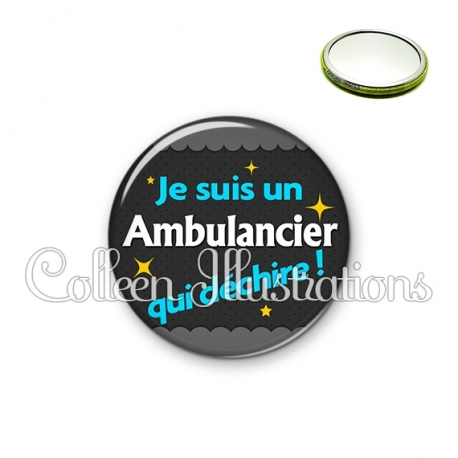 Miroir simple avec dos métallique décoré d'une image fantaisie et texte.