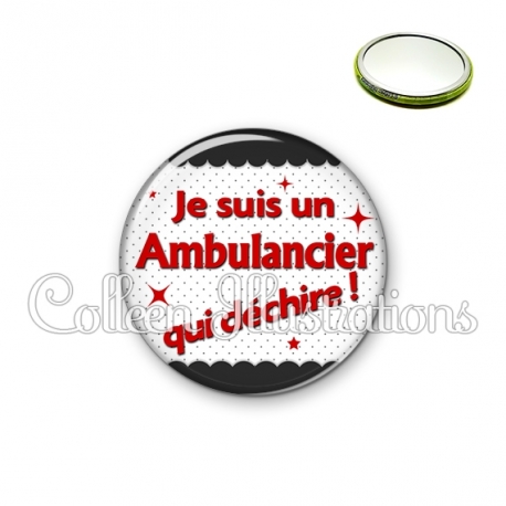 Miroir simple avec dos métallique décoré d'une image fantaisie et texte.