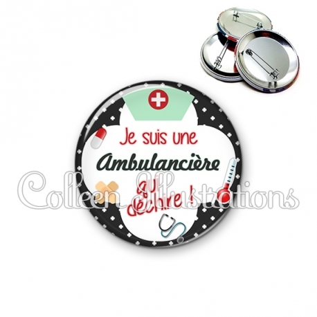 Image imprimée en haute résolution sur papier de qualité, protégée d'un film plastique, et sertie sur une coque et épingle métallique.
