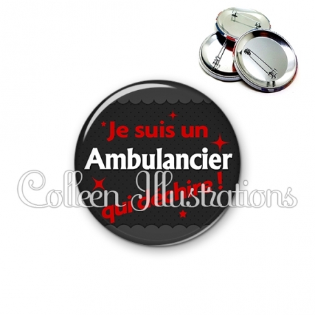 Image imprimée en haute résolution sur papier de qualité, protégée d'un film plastique, et sertie sur une coque et épingle métallique.