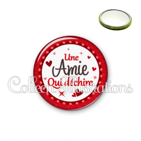 Miroir simple avec dos métallique décoré d'une image fantaisie et texte.