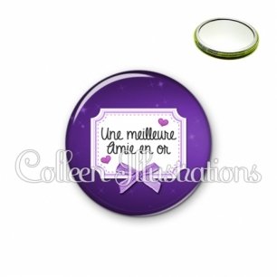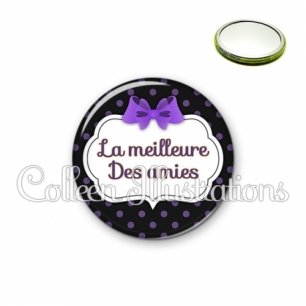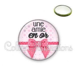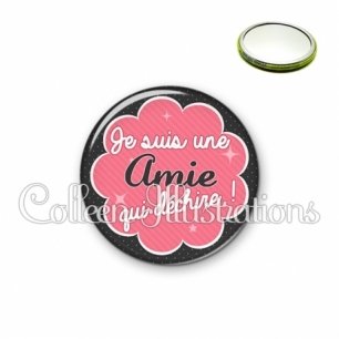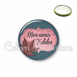 Miroir simple avec dos métallique décoré d'une image fantaisie et texte.