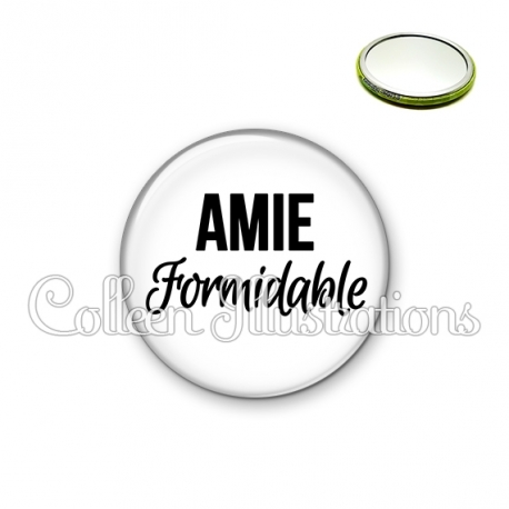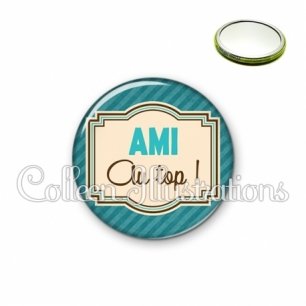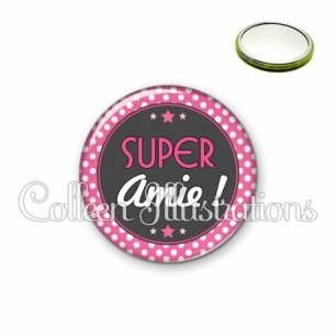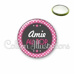 Miroir simple avec dos métallique décoré d'une image fantaisie et texte.