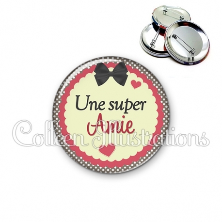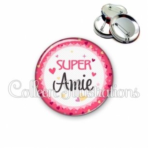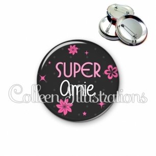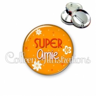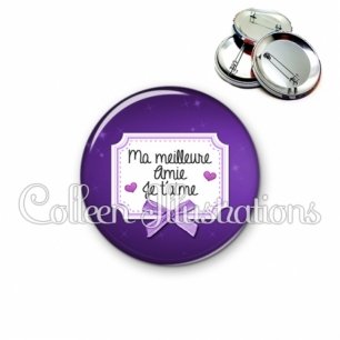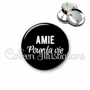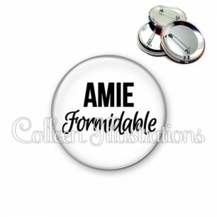 Image imprimée en haute résolution sur papier de qualité, protégée d'un film plastique, et sertie sur une coque et épingle métallique.