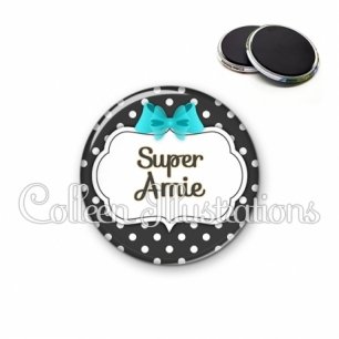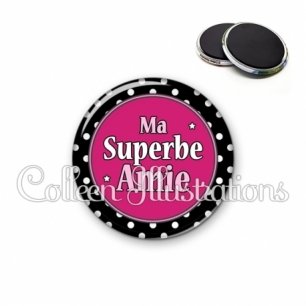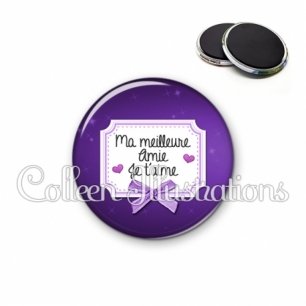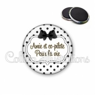 Image imprimée en haute résolution sur papier de qualité, protégée d'un film plastique, et sertie sur une coque métallique avec dos aimanté.