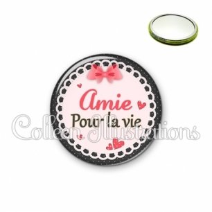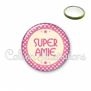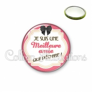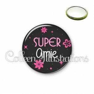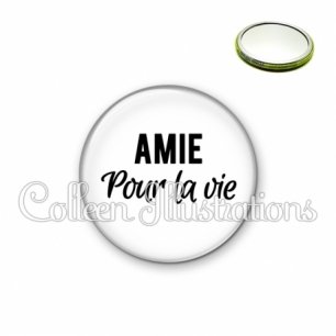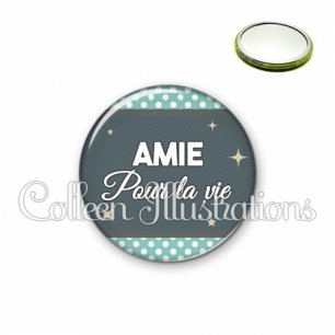 Miroir simple avec dos métallique décoré d'une image fantaisie et texte.