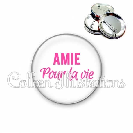 Image imprimée en haute résolution sur papier de qualité, protégée d'un film plastique, et sertie sur une coque et épingle métallique.