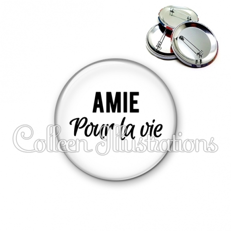 Image imprimée en haute résolution sur papier de qualité, protégée d'un film plastique, et sertie sur une coque et épingle métallique.
