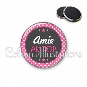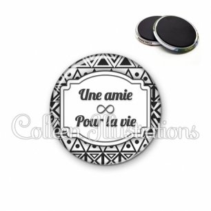 Image imprimée en haute résolution sur papier de qualité, protégée d'un film plastique, et sertie sur une coque métallique avec dos aimanté.
