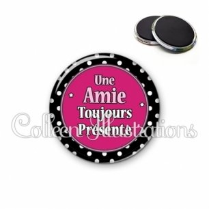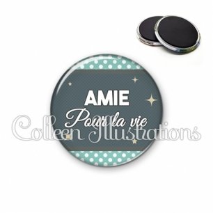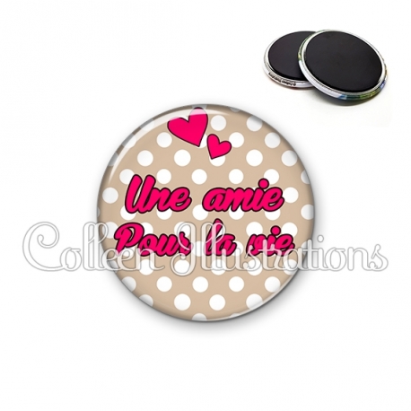 Image imprimée en haute résolution sur papier de qualité, protégée d'un film plastique, et sertie sur une coque métallique avec dos aimanté.