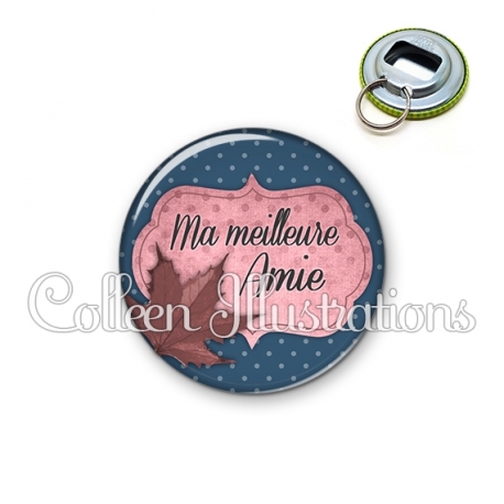 Image imprimée en haute résolution sur papier de qualité, protégée d'un film plastique, et sertie sur une coque métallique avec dos décapsuleur.