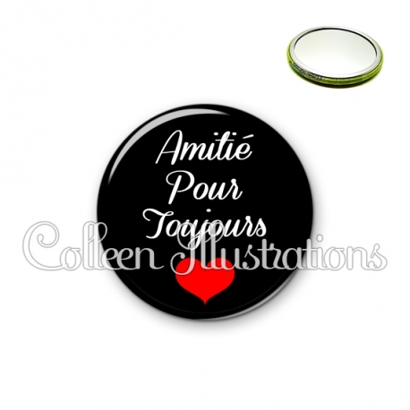 Miroir simple avec dos métallique décoré d'une image fantaisie et texte.