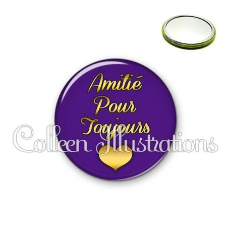 Miroir simple avec dos métallique décoré d'une image fantaisie et texte.