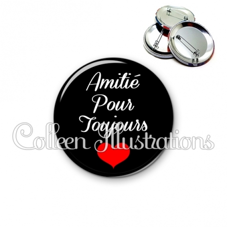 Image imprimée en haute résolution sur papier de qualité, protégée d'un film plastique, et sertie sur une coque et épingle métallique.