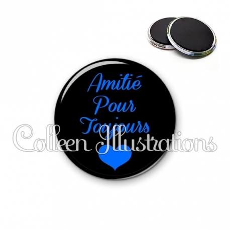 Image imprimée en haute résolution sur papier de qualité, protégée d'un film plastique, et sertie sur une coque métallique avec dos aimanté.