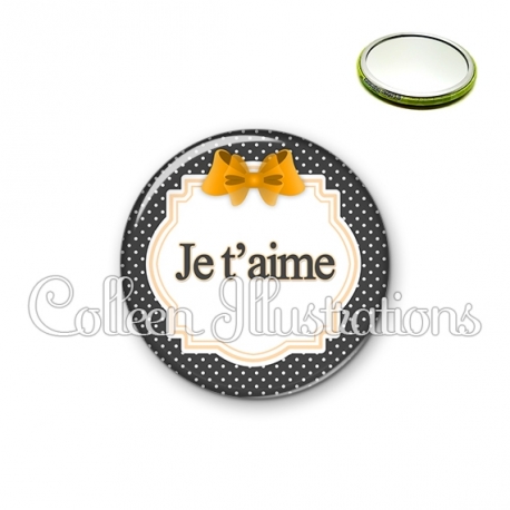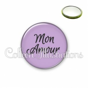 Miroir simple avec dos métallique décoré d'une image fantaisie et texte.