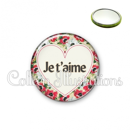 Miroir simple avec dos métallique décoré d'une image fantaisie et texte.