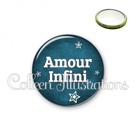 Miroir simple avec dos métallique décoré d'une image fantaisie et texte.
