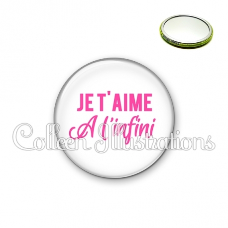 Miroir simple avec dos métallique décoré d'une image fantaisie et texte.