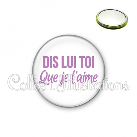 Miroir simple avec dos métallique décoré d'une image fantaisie et texte.