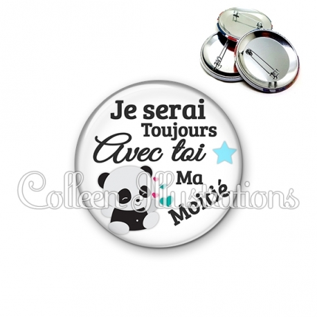 Image imprimée en haute résolution sur papier de qualité, protégée d'un film plastique, et sertie sur une coque et épingle métallique.