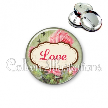 Image imprimée en haute résolution sur papier de qualité, protégée d'un film plastique, et sertie sur une coque et épingle métallique.