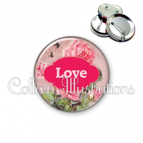 Image imprimée en haute résolution sur papier de qualité, protégée d'un film plastique, et sertie sur une coque et épingle métallique.