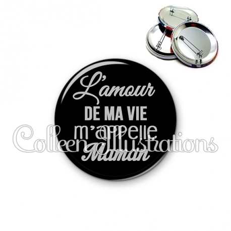 Image imprimée en haute résolution sur papier de qualité, protégée d'un film plastique, et sertie sur une coque et épingle métallique.
