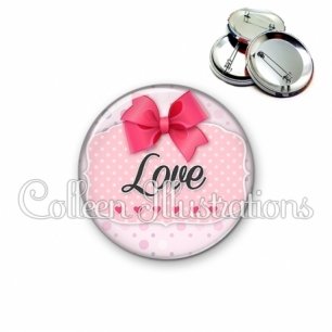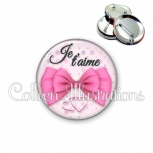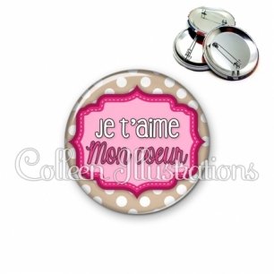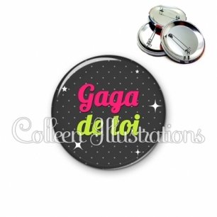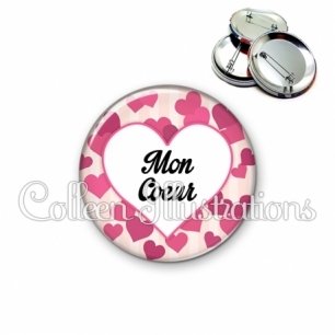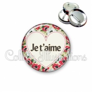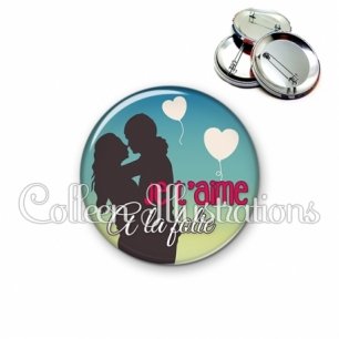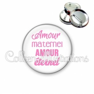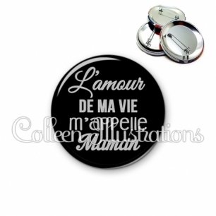 Image imprimée en haute résolution sur papier de qualité, protégée d'un film plastique, et sertie sur une coque et épingle métallique.