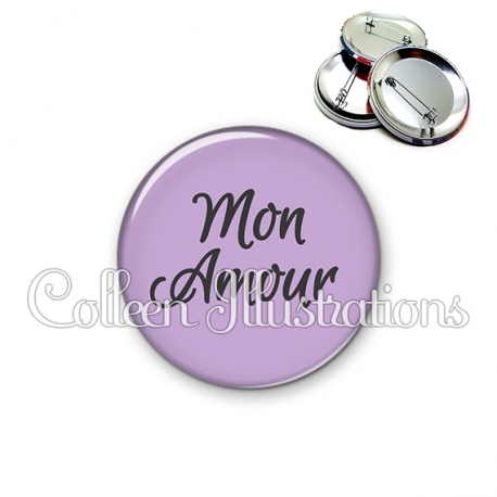 Image imprimée en haute résolution sur papier de qualité, protégée d'un film plastique, et sertie sur une coque et épingle métallique.