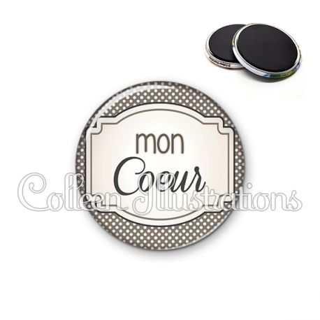 Image imprimée en haute résolution sur papier de qualité, protégée d'un film plastique, et sertie sur une coque métallique avec dos aimanté.