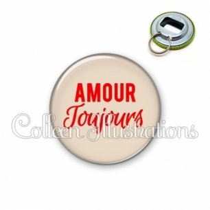 Image imprimée en haute résolution sur papier de qualité, protégée d'un film plastique, et sertie sur une coque métallique avec dos décapsuleur.