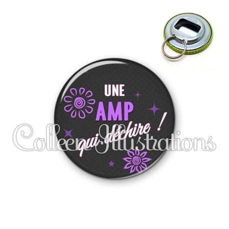 Image imprimée en haute résolution sur papier de qualité, protégée d'un film plastique, et sertie sur une coque métallique avec dos décapsuleur.