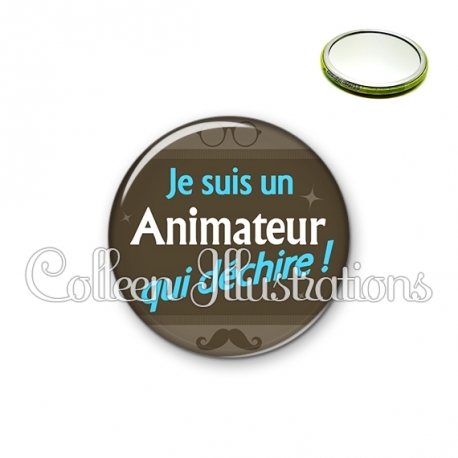 Miroir simple avec dos métallique décoré d'une image fantaisie et texte.