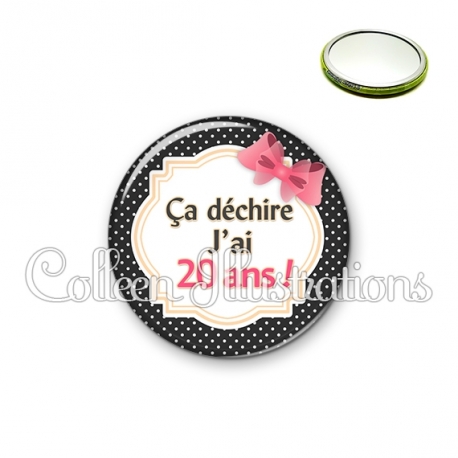 Miroir simple avec dos métallique décoré d'une image fantaisie et texte.
