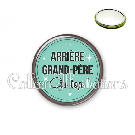 Miroir simple avec dos métallique décoré d'une image fantaisie et texte.
