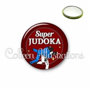 Image imprimée en haute résolution sur papier de qualité, protégée d'un film plastique, et sertie sur une coque métallique avec dos miroir. Une seule face, non grossissante.