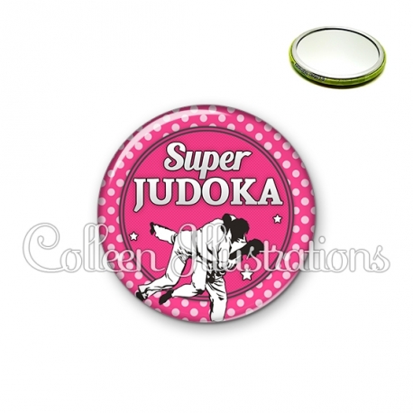 Image imprimée en haute résolution sur papier de qualité, protégée d'un film plastique, et sertie sur une coque métallique avec dos miroir. Une seule face, non grossissante.