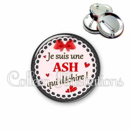 Image imprimée en haute résolution sur papier de qualité, protégée d'un film plastique, et sertie sur une coque et épingle métallique.