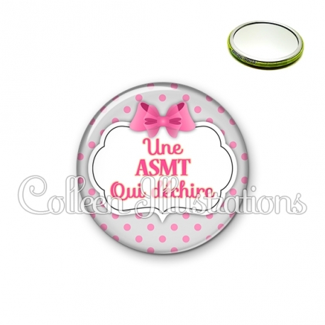 Miroir simple avec dos métallique décoré d'une image fantaisie et texte.